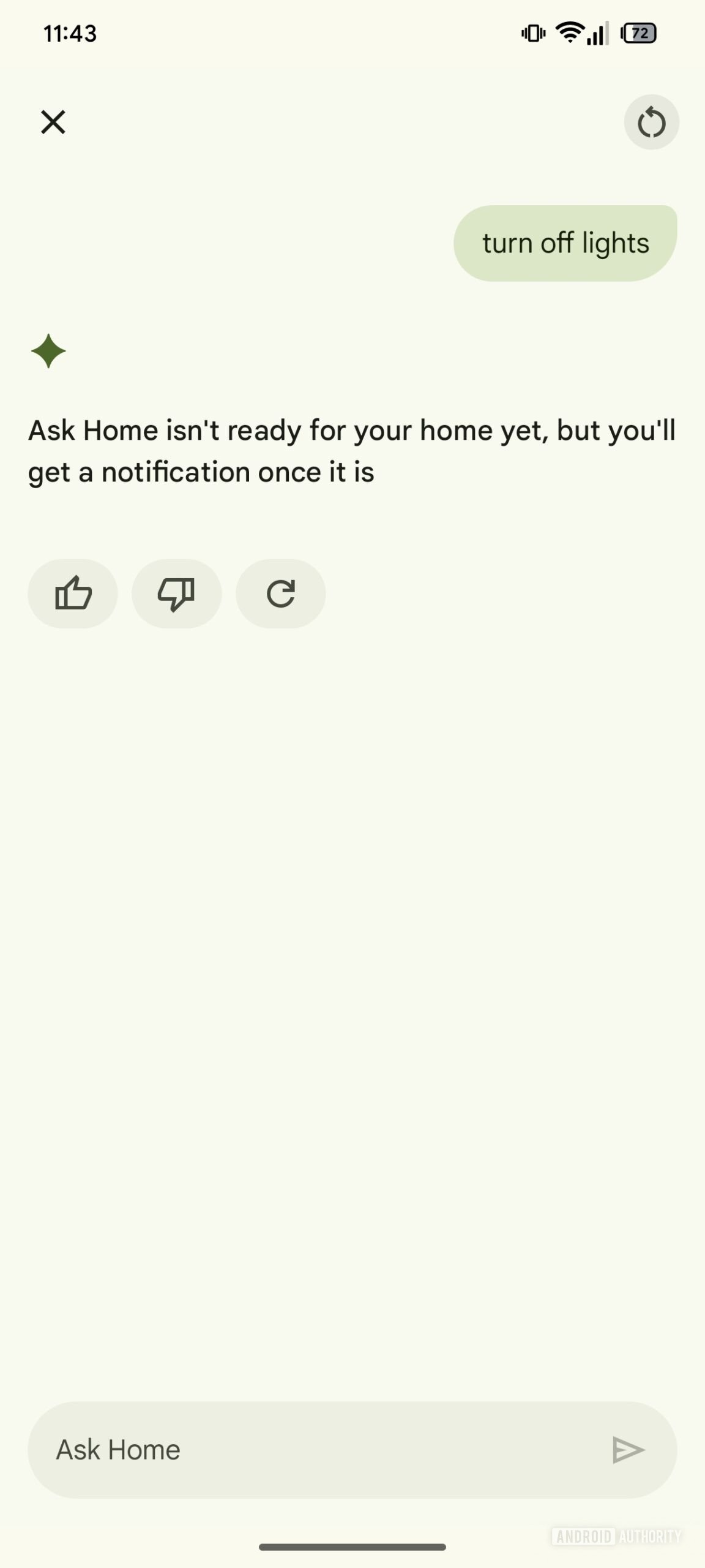 Gemini will be integrated into the search bar at the top, the one with the wording Ask Home. After accepting terms and conditions for the use of the assistant, users will be welcomed by a “empty” conversation screen.
